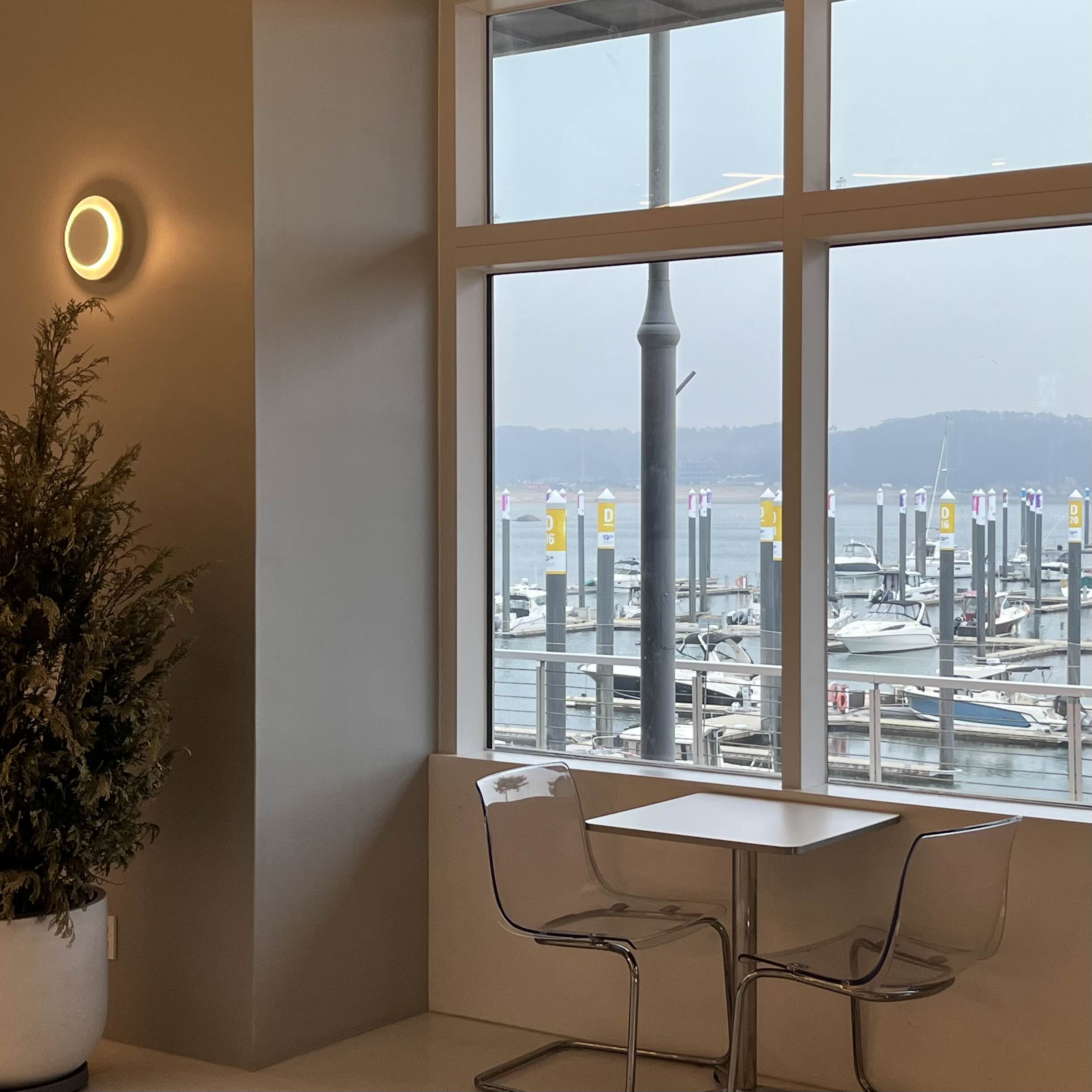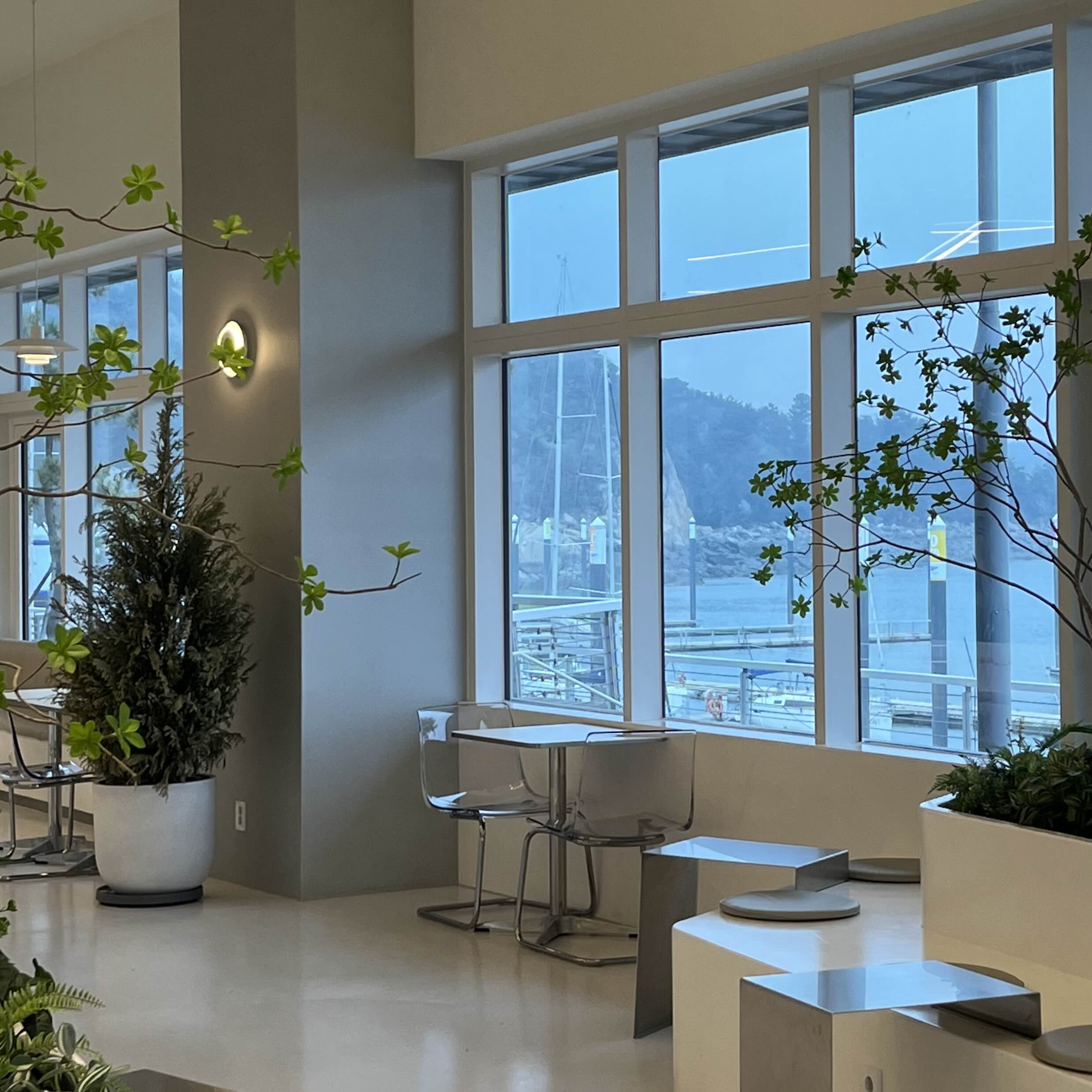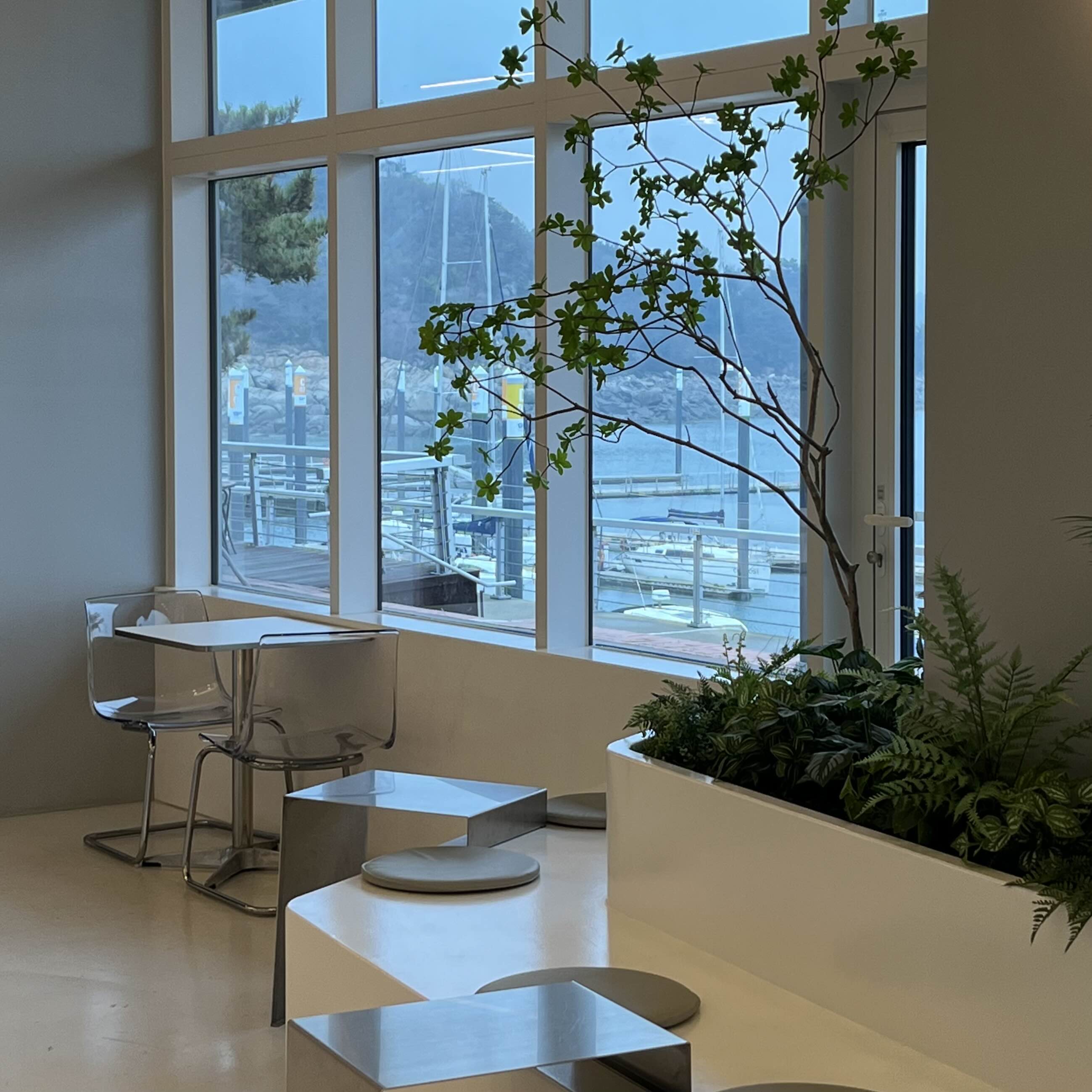 탁 트인 창 너머로 요트뷰를 품고 있는 곳입니다 ~