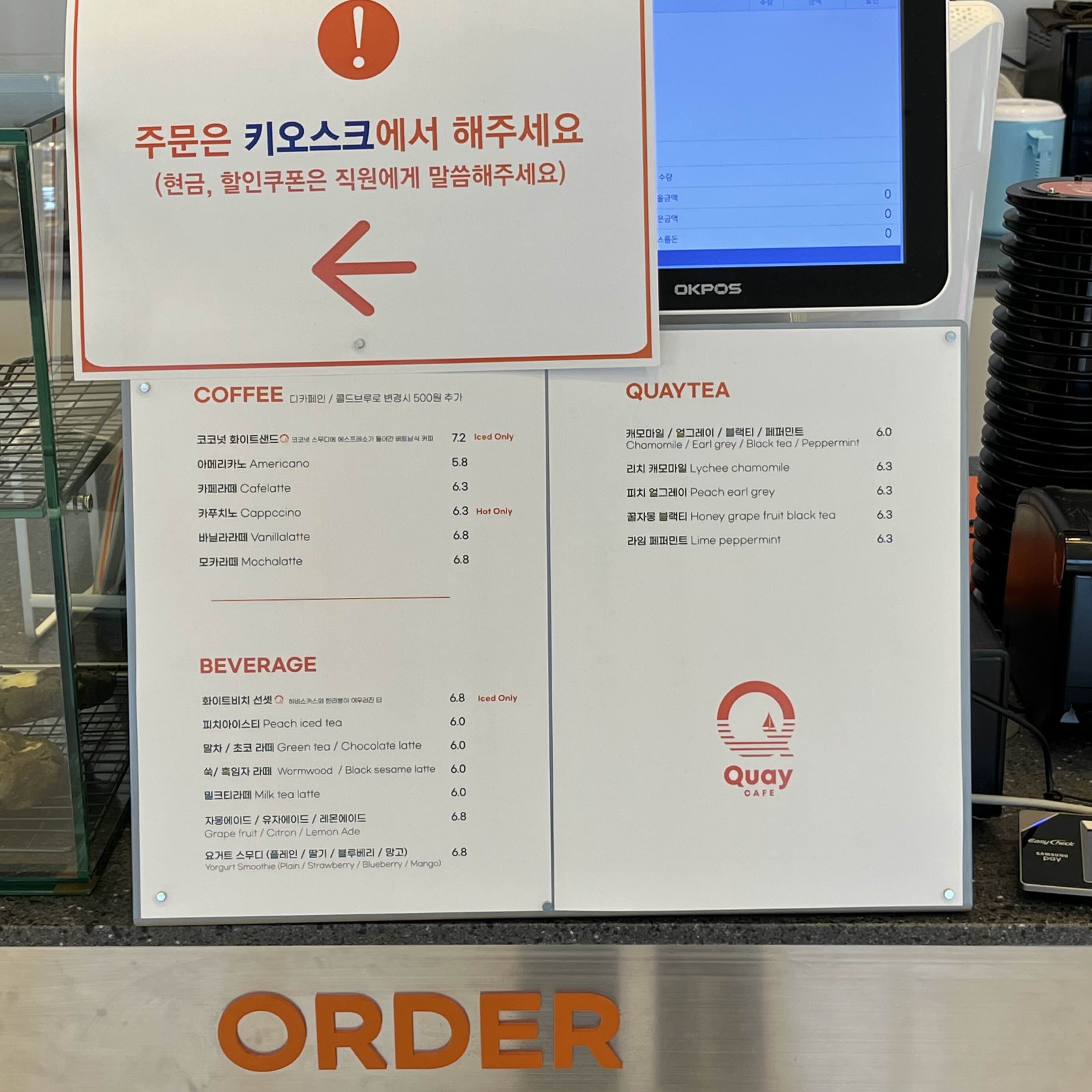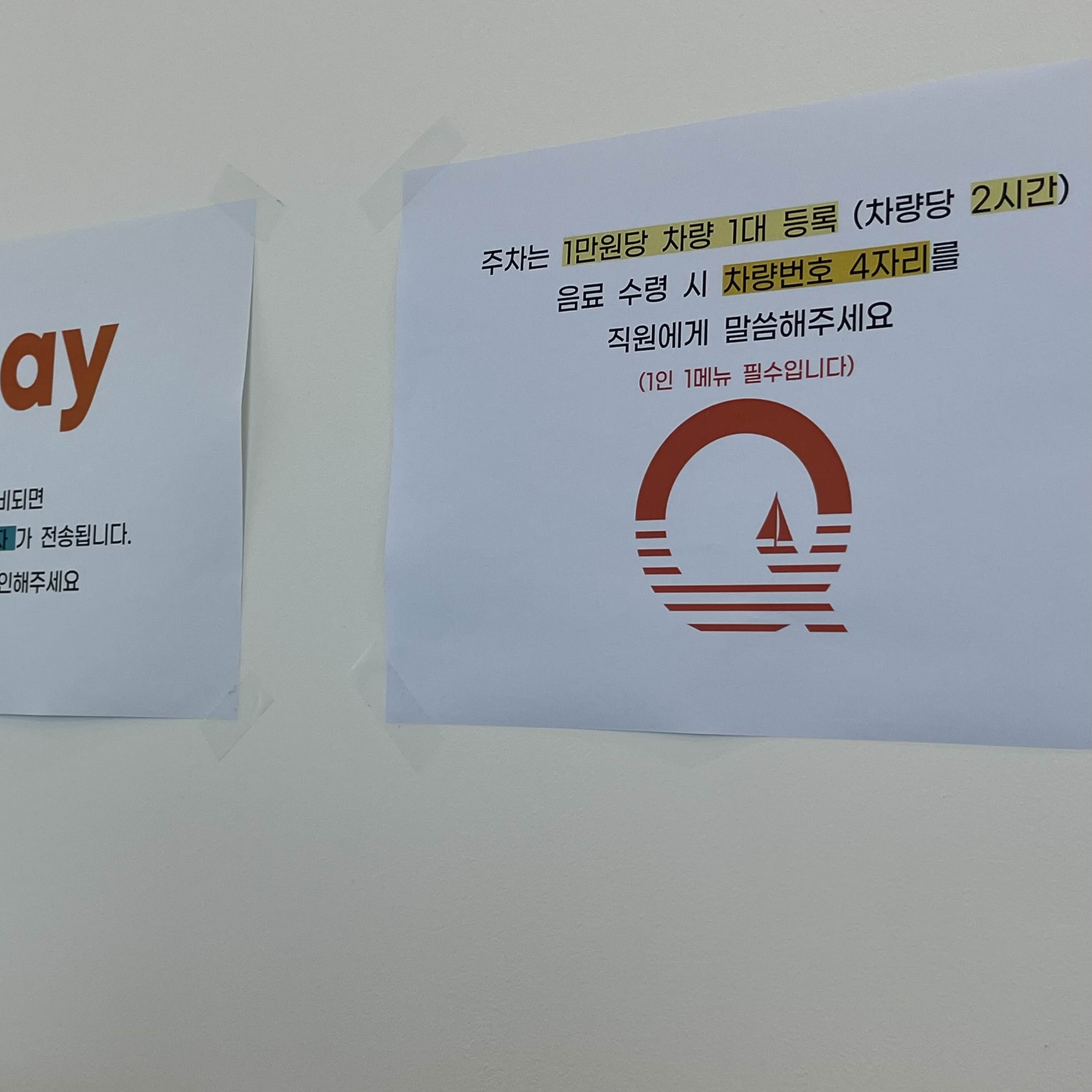 Quay CAFE 1만 원 이상 구매 시 주차 최대 2시간 무료 제공